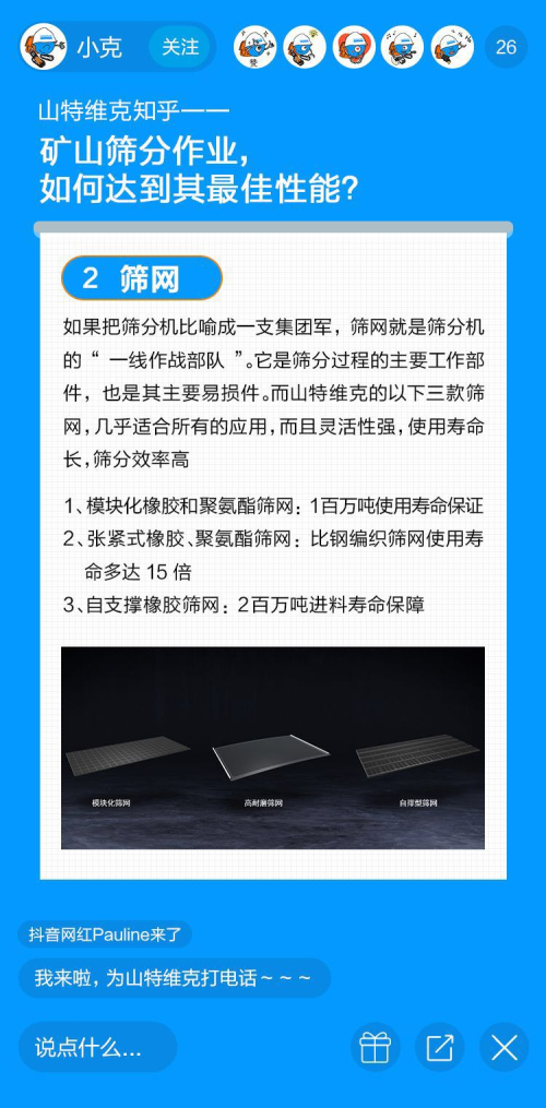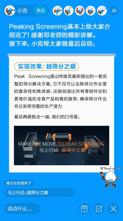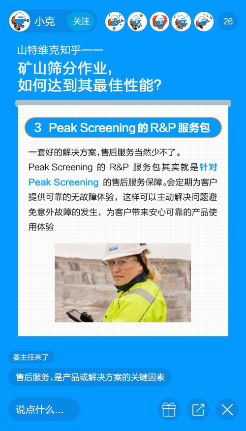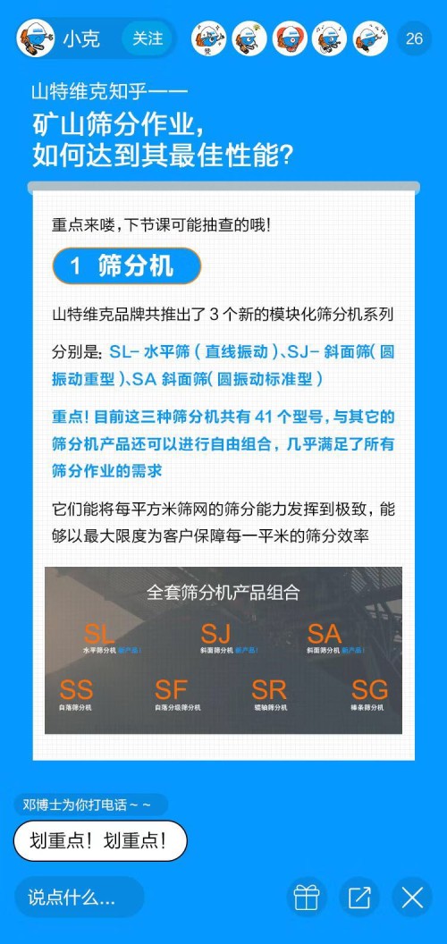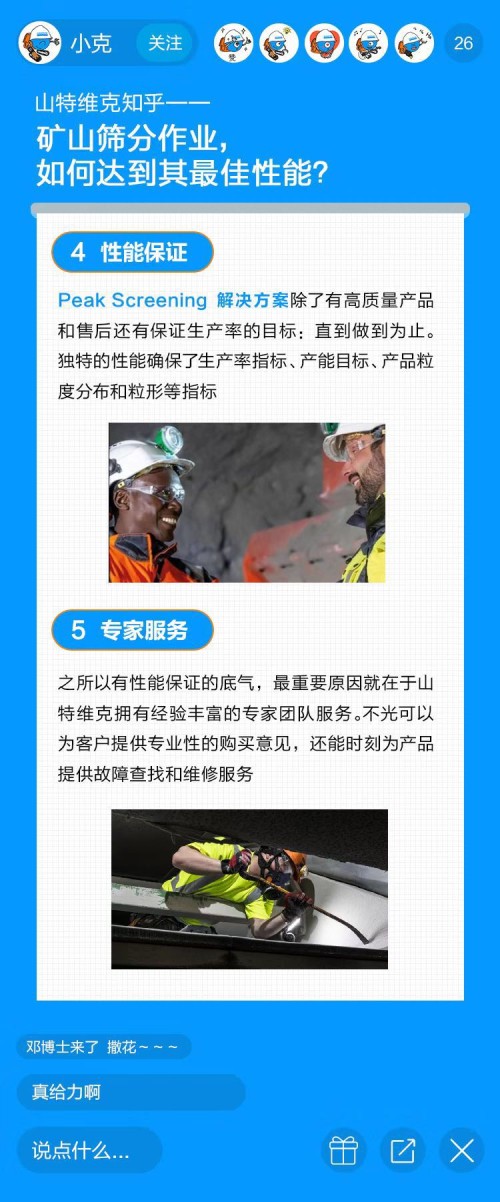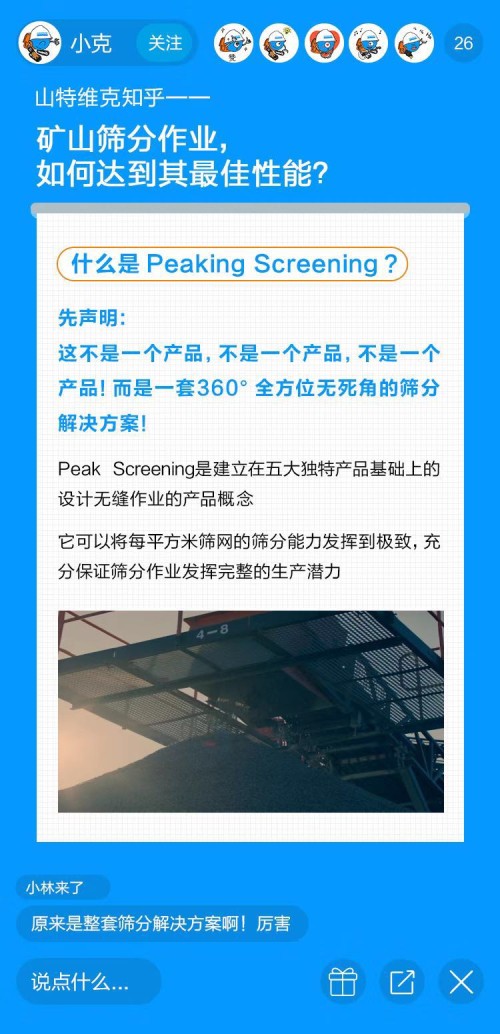 今天的直播課就請(qǐng)他,為大家講講礦山開(kāi)采中一個(gè)重要環(huán)節(jié)——篩分。要知道篩分性能不佳會(huì)給開(kāi)采商帶來(lái)不可預(yù)估的損失,比如成本的增加、利潤(rùn)的下降,那你知道如何解決礦山篩分作業(yè)中的痛點(diǎn),從而實(shí)現(xiàn)產(chǎn)能最大化么?今天我們就以山特維克Peaking Screening篩分解決方案為例,看看如何做到「越篩分之顛」!